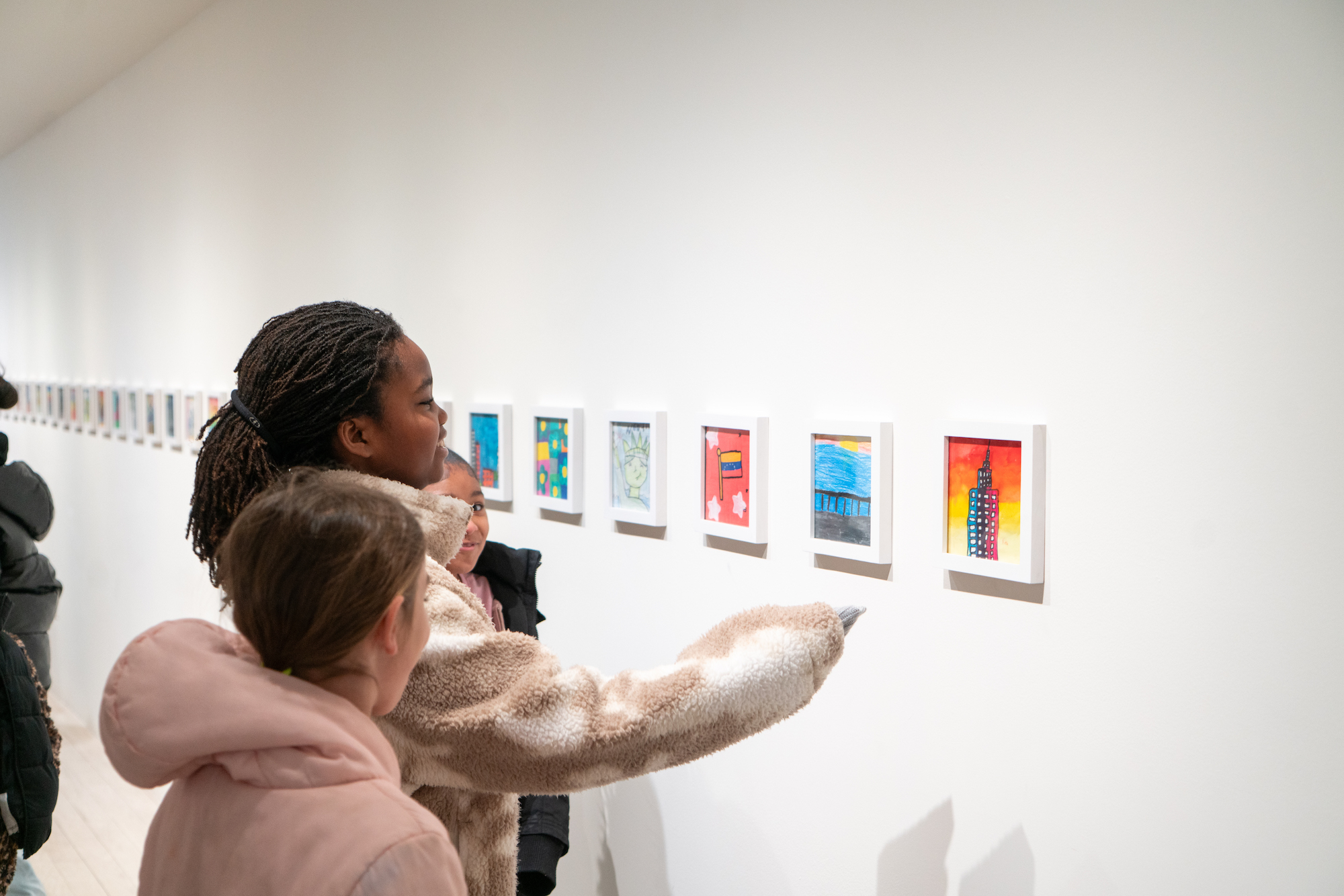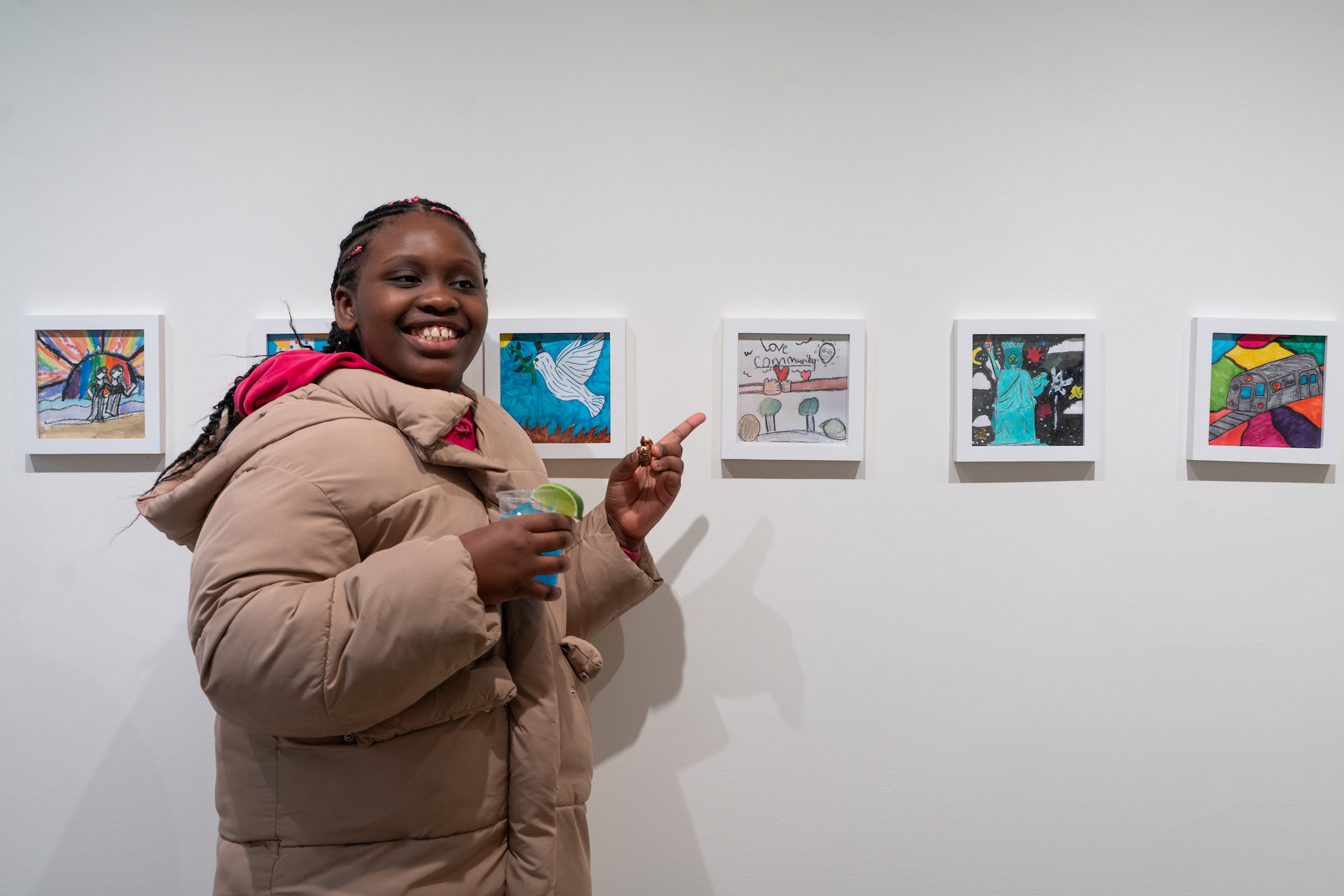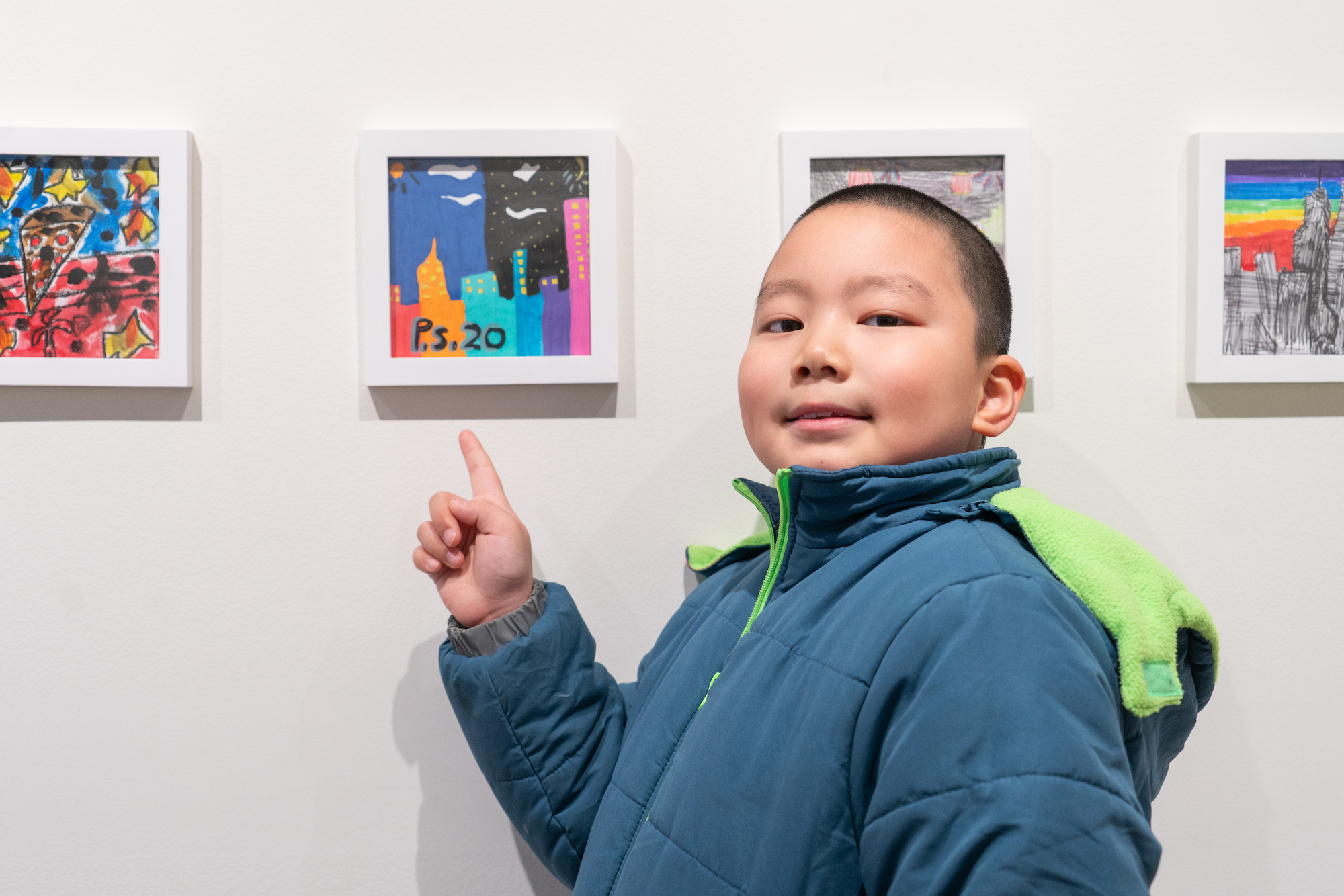 This is the gallery’s second exhibition featuring student artwork from public schools in the Lower East Side community. For this project, students from Kindergarten to 5th grade were invited to make art inspired by their surrounding neighborhood. Through this prompt, children were encouraged to appreciate their community as an inclusive, generative space where they can express themselves freely and inventively. Student artwork ranges from crayon drawings to photographs, sculpture, and collage; depicting personal observations, affirmations, and reflections on life, friends, and family.