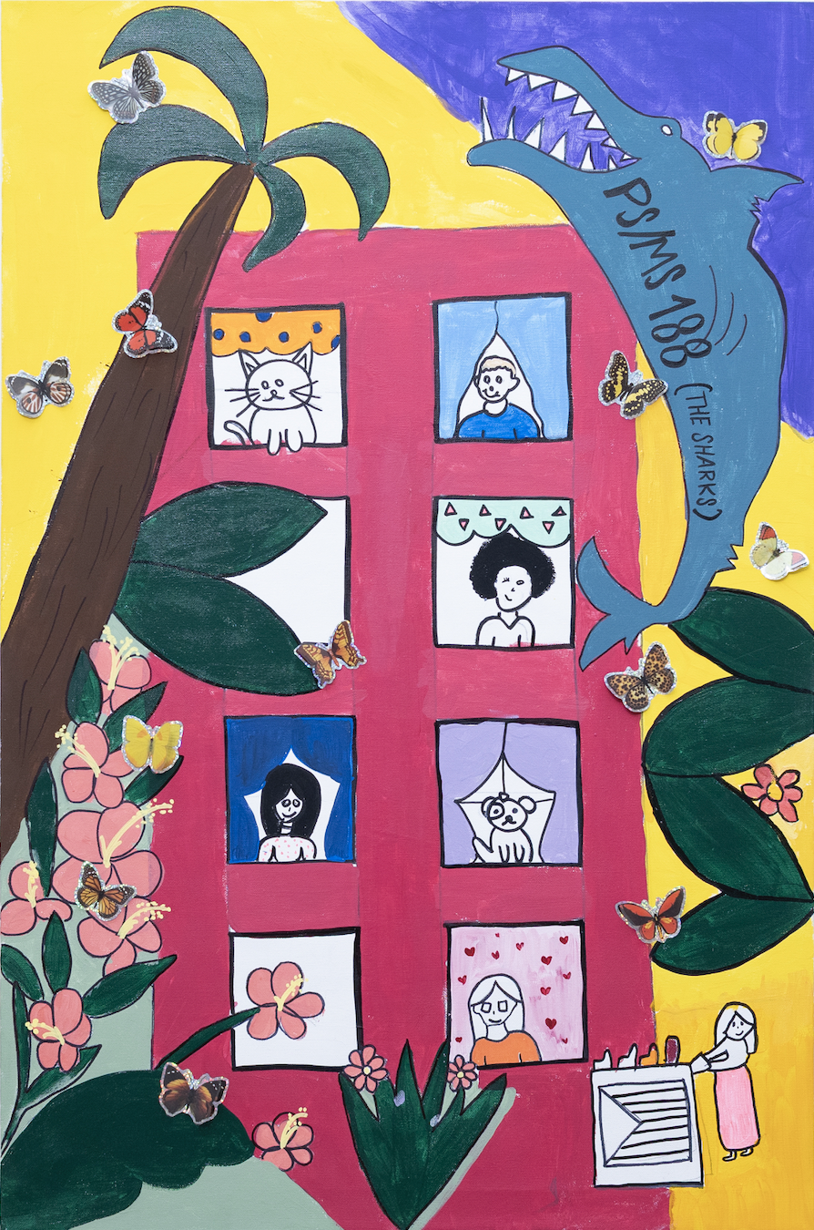 This is the gallery’s second exhibition featuring student artwork from public schools in the Lower East Side community. For this project, students from Kindergarten to 5th grade were invited to make art inspired by their surrounding neighborhood. Through this prompt, children were encouraged to appreciate their community as an inclusive, generative space where they can express themselves freely and inventively. Student artwork ranges from crayon drawings to photographs, sculpture, and collage; depicting personal observations, affirmations, and reflections on life, friends, and family.