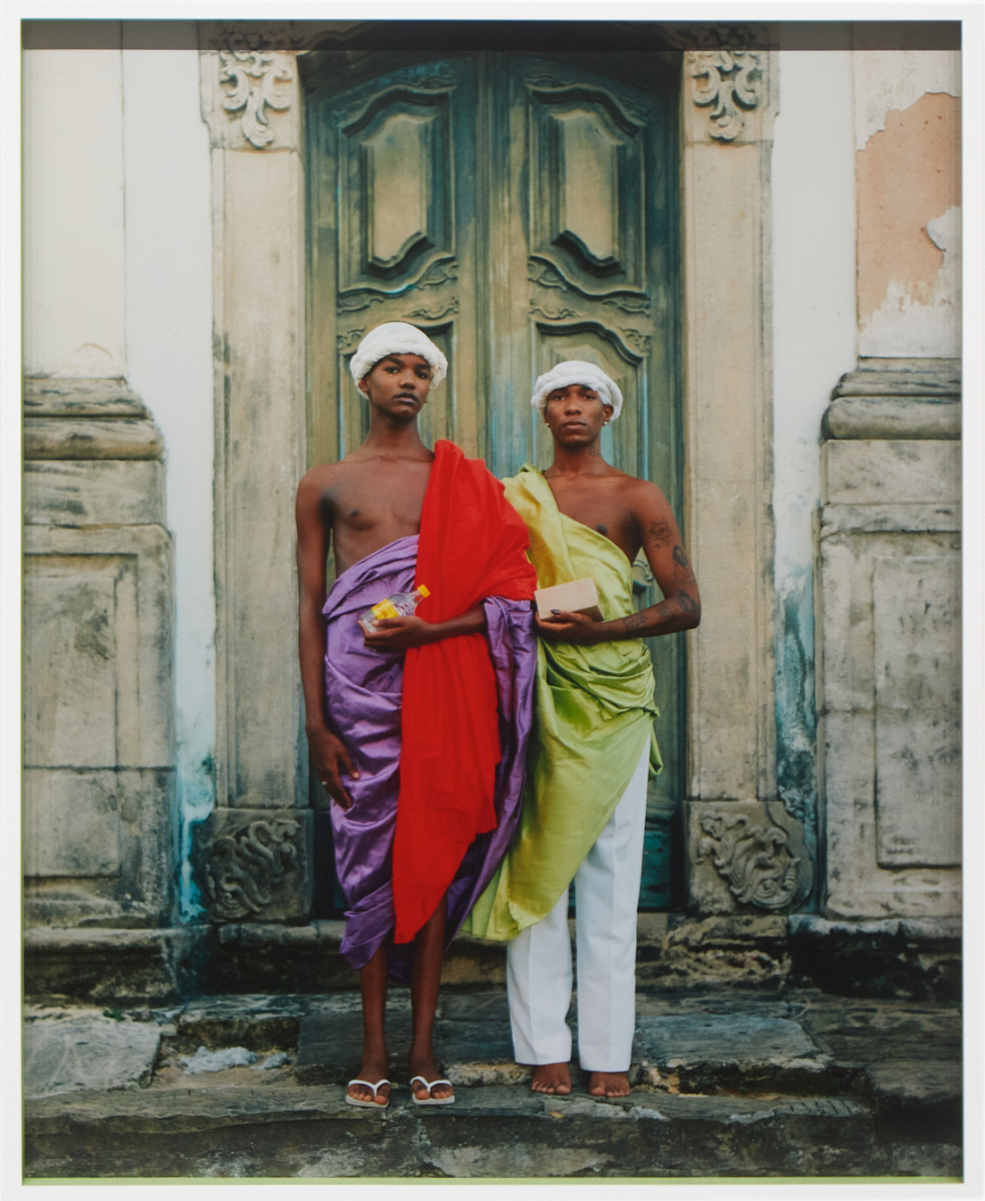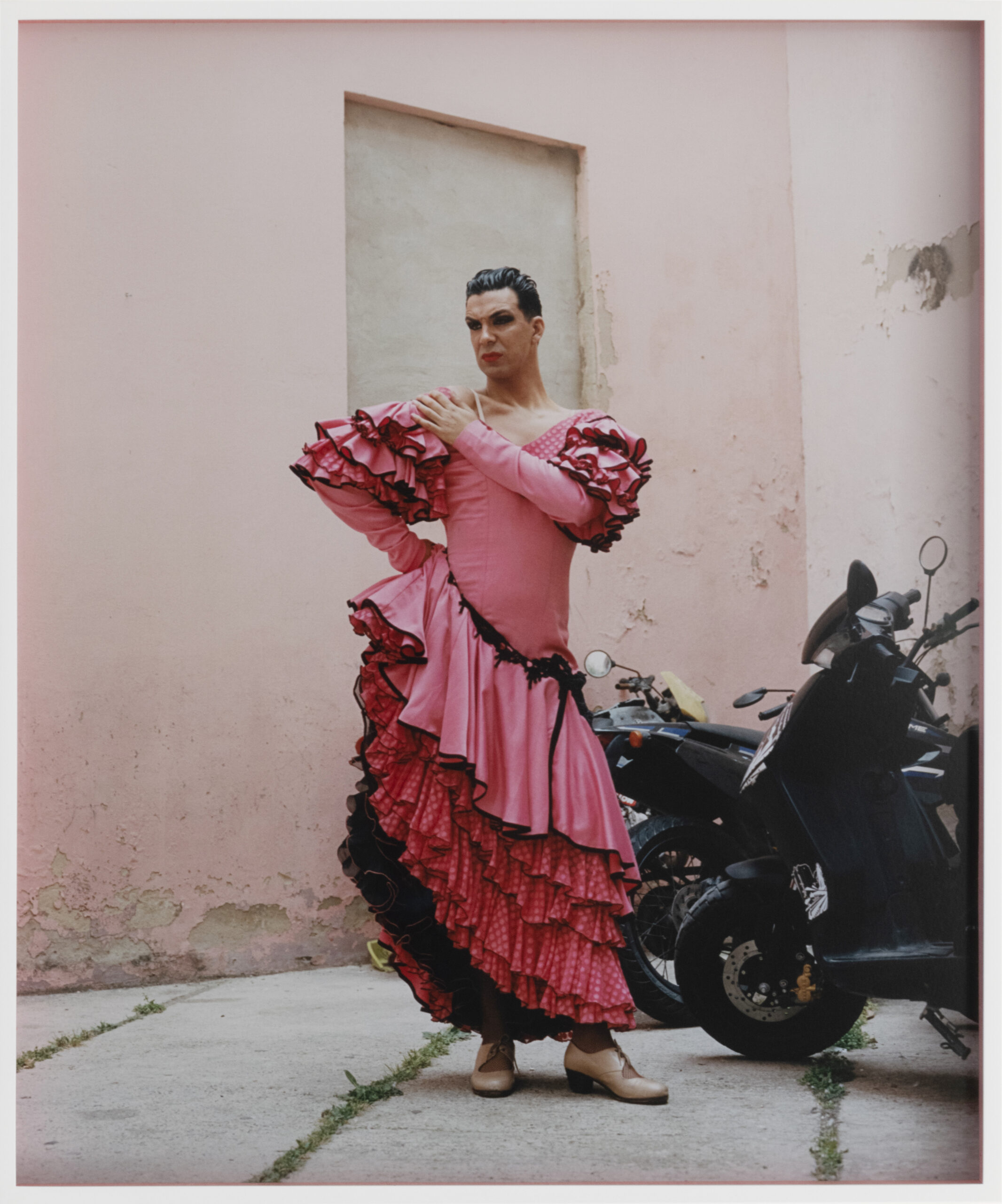 All unique editions, the portraits in this presentation stem from five of Falquez’s ambitious projects: Compañerx (2023–2024), Being (2018–ongoing), Arewa (2021–ongoing), and The Orishas (2023– ongoing). Compañerx incorporates photography, protest art, and video within the context of Colombia’s first bill to protect trans and nonbinary individuals. Made in collaboration with Plataforma Ley Integral Tran, writer Cesar Vallejo, and stylist Lorena Maza, the series was originally shown in Bogotá in July 2024. Bushwig Grows Up was the title of the 2021 New York Times article article that Camila Falquez was commissioned to photograph for. The article honored the 10 year anniversary of Bushwig, the annual end of summer drag weekend in Bushwick, NYC. Falquez brought hand painted backdrops to Bushwick in order to photograph each Queen in front of their perfect colour. Arewa is a portrait series documenting the close relationship between Falquez and Arewa Basit, a trans performer and activist in New York City. This collaboration delves into the physicality of the trans experience and the process of self-discovery and becoming. The Orishas is an ongoing exploration of Latin American religious iconography within the African diaspora and its connection to gender identity. The series currently spans Brazil, Cuba, and Puerto Rico, investigating specific deities and religious figures in the Caribbean and Latin America and their potential to express ideas of freedom through a queer perspective. Manuel Liñán and his company were captured by Camila for the the New York Times. The portraits were taken in celebration of the show “Viva!” in Jerez, Spain. Executed entirely in Drag, the show featured six extraordinary dancers in colorful shawls known as mantones, with their hair styled with decorative combs and flowers. “Viva!” has been widely embraced and by audiences and critics since its debut.